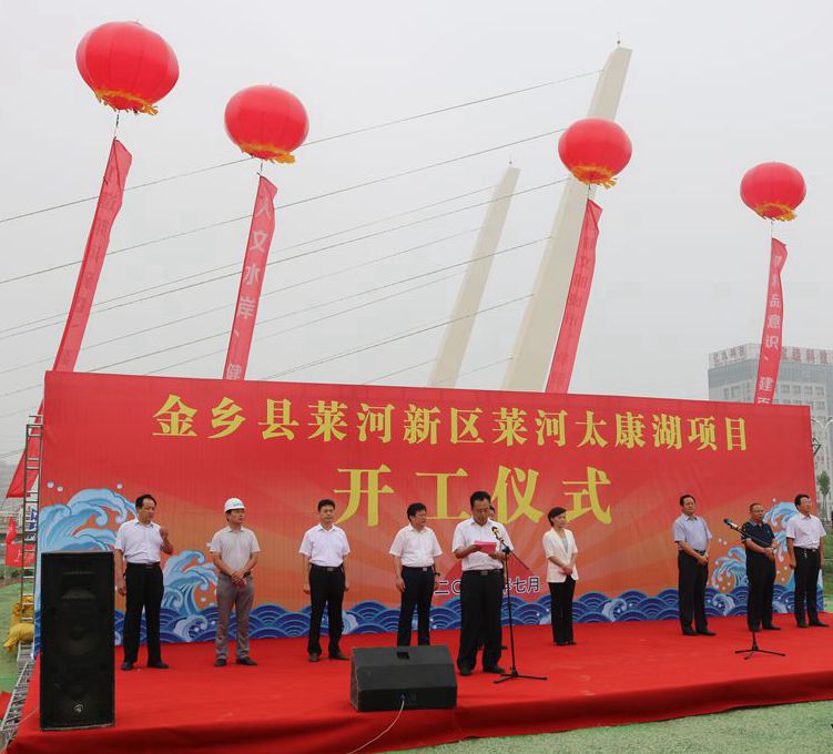 7月28日,萊河新區(qū)萊河太康湖項目開工儀式在金鄉(xiāng)縣舉行。金鄉(xiāng)縣委書記董冰,縣委副書記、縣長鄭士民,縣人大常委會主任付元琦,縣政協(xié)主席胡桂生,山東水控發(fā)展集團有限公司董事長吳東振、總經(jīng)理李加坤,濟寧金水水利工程有限公司,縣財政局、國土局等政府各部門主要負責人150余人出席開工儀式。儀式由縣委副書記、縣長鄭士民主持。