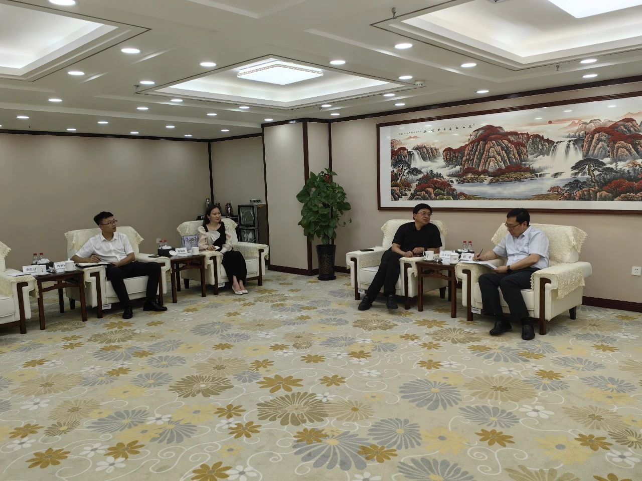 中國農業發展銀行新疆分行黨委委員、副行長劉彬,糧棉油客戶處處長王建喜,產業客戶處副處長馬麗,新疆水發農業集團有限公司財務總監周麗梅,新疆水發現代農業發展有限公司董事長陳更林,新疆水發益爾農業科技有限公司總經理李勝利及雙方相關部門負責同志參加座談。