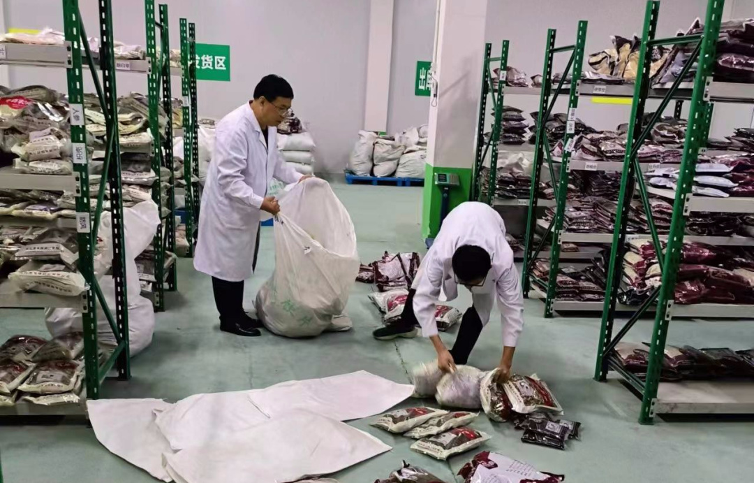▲德欣公司副總經理宋明嶺和值班員董建呈在假期期間為客戶揀貨并發貨,保證假期工作“不斷檔”。